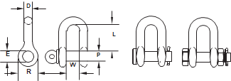 Round Pin Anchor/Chain Shackles allow easy removal of pin by removing cotter pin and perform well where pin is subject to torque or twisting, but not so much in applications where pin is subject to an axial load.